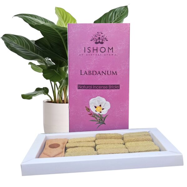 Ishom Natural Incense Bricks-  Labdanum, 15 bricks + 1 burner: